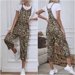 Boho Leopard Print Pockets Casual Cami Jumpsuit