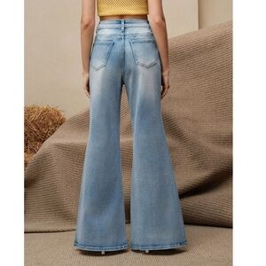 Boho Light Wash Floral Embroidered Wide leg Denim Jeans
