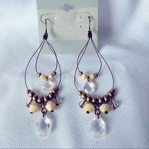 Adorable beaded Boho Dangle Earrings with earth tone colors and teardrop clear beads. Lightweight making for a very comfortable fit and wear.