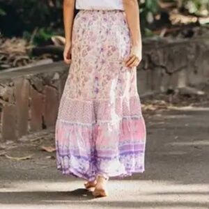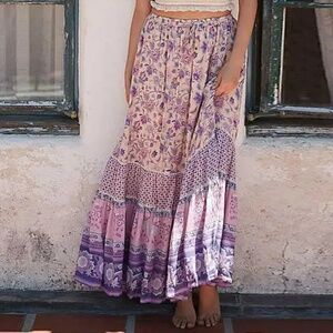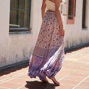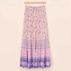 Boho Lilac Purple Floral Print Stretchy Waist Maxi Skirt