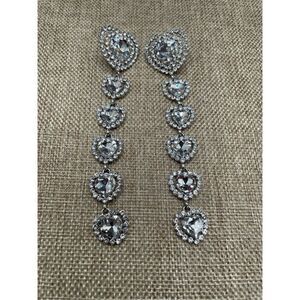 Boho Long Heart Full Diamond Dangle Earrings Sparkling Statement Rhinestone Drop Earrings Fashion Stud Earrings for Women and Girls Gift Party (Silver