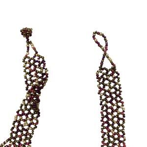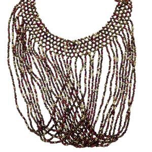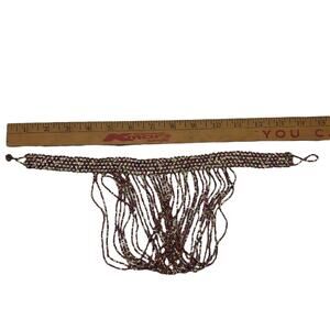 • Design Features: Hand-beaded tribal-style choker with long layered strands, loop-and-knot closure