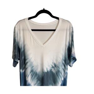 Boho M Tie-Dye Blue Beach Swim Coverup Maxi Dress V-Neck Short Sleeve Blue/White