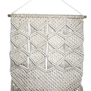 ✨ Elevate your space with this stunning handmade macramé wall hanging, featuring intricate knotwork in a diamond pattern and finished with a dramatic fringe. The neutral tones and boho texture make it perfect for bedrooms, nurseries, apartments, or cozy corners needing that organic touch.