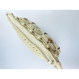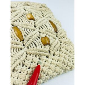 ~ Boho macrame wristlet / bag / lg clutch purse. Approx 12" x 6.5". Top zipper closure. Fully lined with one open pocket inside. Wrist strap approx 6". Based on excellent quality, durable cotton, wood beads, and no labels, believed to be vintage VTG 1970s or very accurately 70s inspired.