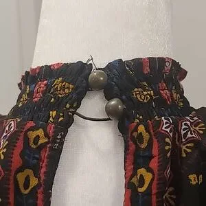 2 buttons in back neck - one button closure is broken can be easily fixed seen by hand