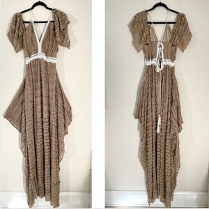 Boho Maxi Dress Off Shoulder Ruffle Lace Train Fairy Cottagecore Photoshoot