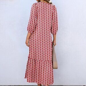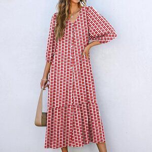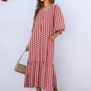 Boho Maxi Dresses for Women Summer Puff Sleeve V Neck Flowy Long Casual Dress wi