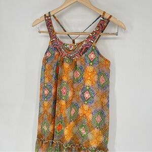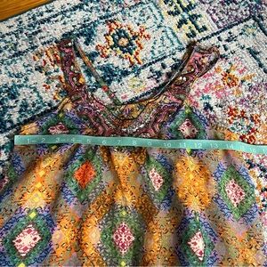 Gorgeous size small perfect for summer! This dress is in great used condition, one small imperfection shown in last photo. Measurements are included in photos.