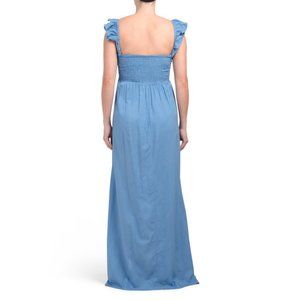 Elevate your summer wardrobe with this enchanting sky-blue maxi dress. Perfect for sun-soaked days or balmy evenings, its off-shoulder design and flirtatious front slit add a touch of allure to your seasonal style. Whether you're attending a beach wedding or enjoying a sunset dinner, this dress promises to keep you cool and chic.