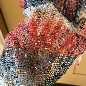 Boho Mesh Knit Cardigan One Size Blue Red White Slouchy