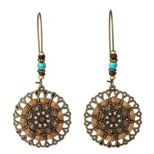 Boho Metal Hollow Carved Beaded Drop Earrings