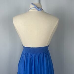 Boho Midi Dress Size Small Blue Embroidered Crochet Hi Low Beach Gypsy Festival