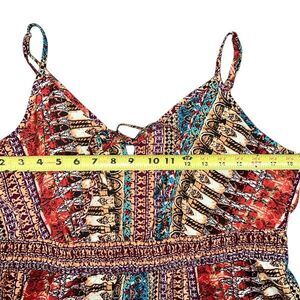 Boho Midi Sundress 1X Tiered Flowy Dress Smocked Adjustable Straps Tribal Print