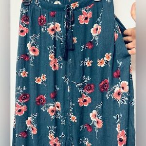 Boho Minimalist Floral Button-Down Maxi Skirt Size Small