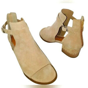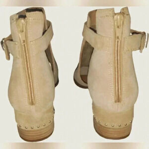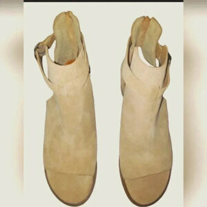 New With Tags Tan Women's Size 10 Leather Suede Open Toe 2" Block Heel Bootie Festival Packable Comfortable Walking Dancing Career Church Western Bohemian Gypsy Vacation Rodeo Moto Biker Rider Modern Must-Have Coastal Cowgirl Holiday Business Casual Cowboy Carter Sandals