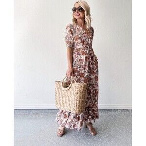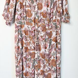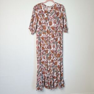 Boho Moody Fall Floral XXL Ruffled Puff Sleeve Button Down Maxi Dress Knox Rose