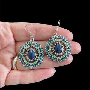 Boho Mosaic Turquoise ( in color)! and Blue Silver Tone Dangle Earrings