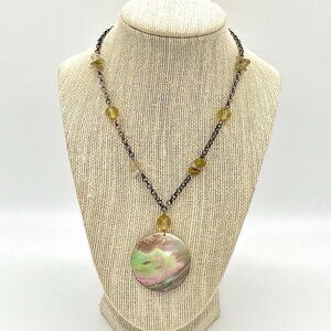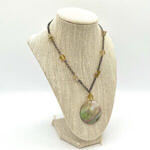 Boho Mother of Pearl Pendant Necklace Citrine-Colored Beads Artisan Nautical