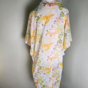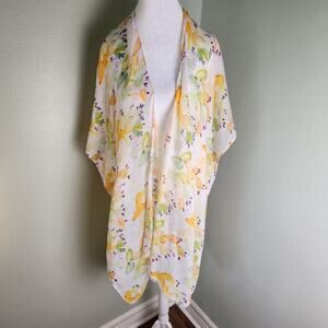 Boho Mrs Roper White Yellow Floral Sheer Open Kimono Cover-up Womens One Size