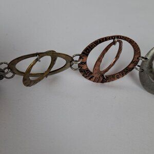 Boho Multi Tone Metal Hoop Chain Belt w/ Silver, Copper, Brass Tone Double Hoops