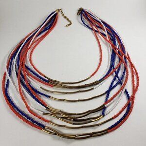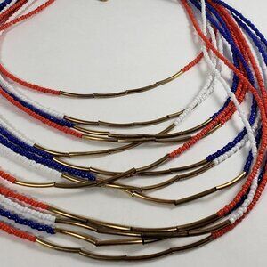 โจ Boho Multi-Strand Beaded Necklace โ Red, White & Blue with Gold-Tone Accents