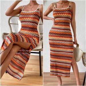 Boho Multicolor Chevron Print Fitted Tank Maxi Dress