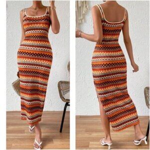 Boho Multicolor Chevron Print Fitted Tank Maxi Dress