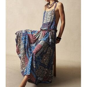 Boho Multicolor Color block Patchwork Racerback Maxi Dress