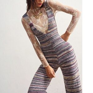 Boho Multicolor Stripes Knit V neck SleeveLess Wide leg Jumpsuit