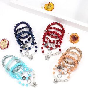 Features: Set of 8 stackable beaded bracelets made with colorful stone beads, acrylic, and eco-friendly alloy. No clasp needed—just slip on and go! Lovely angel wings charms and tassels make each piece special, perfect for daily wear, gift-giving, or stacking for a boho vibe.