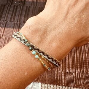 Boho Multilayer Bracelet Turquoise Handmade Woven Cloth Fabric Bracelets