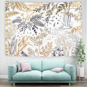 Boho Nature Tapestry Earth Tones Plant Design 51.2"W x 59.1"L Lightweight