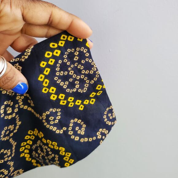 Boho Navy Blue Lightweight 3/4 Button Pullover Top Shirt L