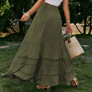 Boho Navy Blue Ruffle Hem Tassel Summer Maxi Skirt