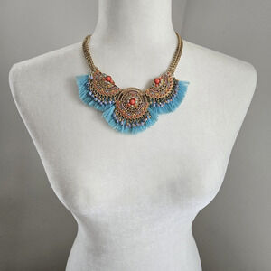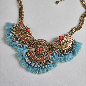 Boho Necklace Colorful Beads Goldtone Tribal Southwest Aztec Festival Maximalist