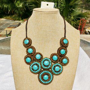 Boho Necklace Turquoise Chunky Festival Bib NWT