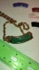 This elegant necklace features a stunning green pendant set in a gold chain, perfect for adding a touch of sophistication to any outfit.