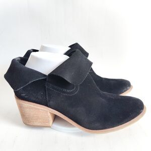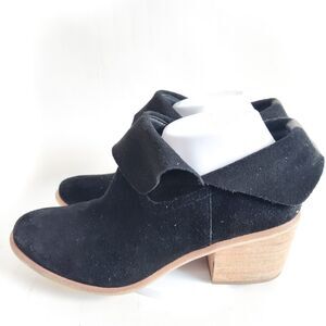 Boho Nordstrom Soft Black Soft Suede Notch Ankle Boots Block Heel Preppy Size 9