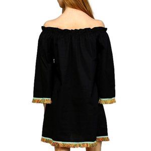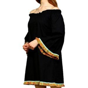 Boho Off Shoulder Fringe Trimmed Gypsy Dress NEW