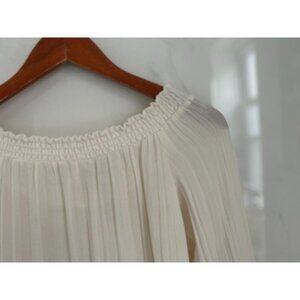 Boho Off-Shoulder Smocked Blouse With Tiered Ruffle Sleeves Ivory White