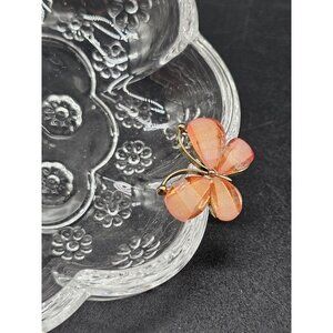 This Oleg Cassini jewelry, trinket or candy dish features a boho design with a multicolor crystal construction adorned with an applied faux jewel butterfly. The intricate design and butterfly theme add a touch of whimsy and elegance to this trinket dish, making it a beautiful decorative accessory for any home. Perfect for serving candies or storing small trinkets, this unique piece combines the luxurious appeal of crystal with a playful bohemian style. Measurements in photos. Pre-owned in excellent condition