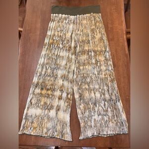 Boho Olive Crinkle Wide Leg Pants Rayon Batik Textured High Waist Pull-On XL Ivy Reed