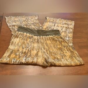 Boho Olive Crinkle Wide Leg Pants Rayon Batik Textured High Waist Pull-On XL