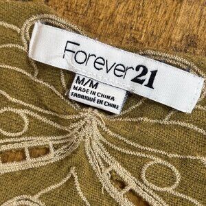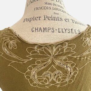 Boho Olive Green Embroidered Mini Dress - Sleeveless, Smocked Waist- M