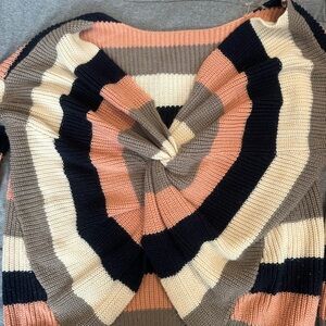 This multicolor sweater by Envy is the perfect mix of cozy and bold. Features an open back detail and vibrant knit texture.