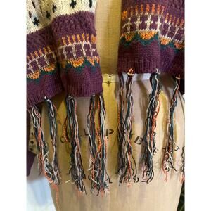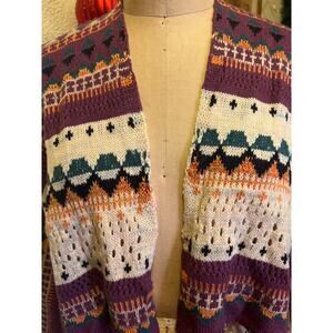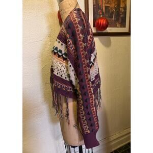 Boho Open Front Multicolor Fringe Hem Sweater Cardigan NWT Size M
