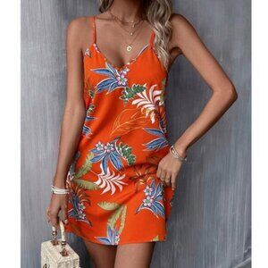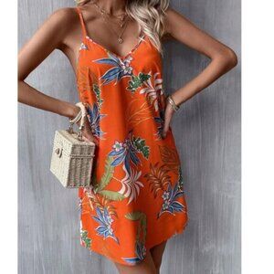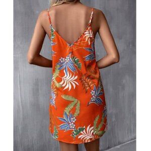 Boho Orange Floral Tropical Print Cami Mini Dress