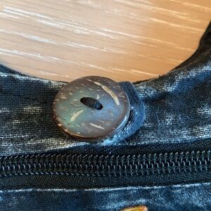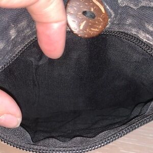 Unbutton the top and the inside also has a side pocket. Zipper above the owl is another nice sized section. All are clean with no stains or wear