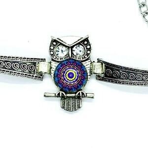 Boho Owl Rhinestone Silver-Tone Bracelet